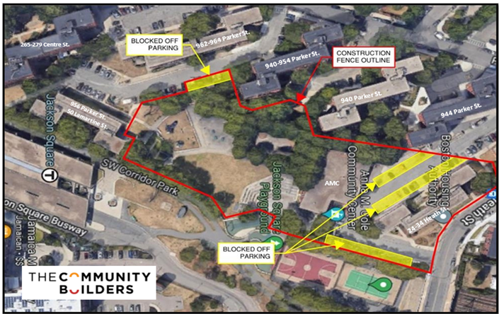 - Fence installation around the construction site and blocking off specific parking areas (see map below of the affected areas)