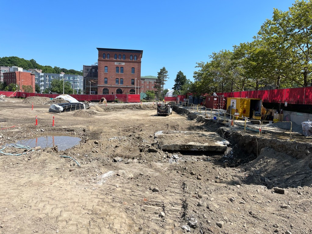 - Excavation of dirt and soils to make way for the foundation for the two new buildings and updated utilities which includes water and sewer drainage lines